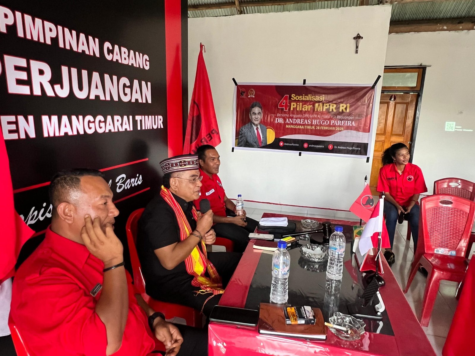 Medialabuanbajo.com,- Wakil Ketua Komisi XIII DPR RI Dapil NTT 1, Andreas Hugo Pareiramelaksanakan kegiatan Sosialisasi 4 Pilar di Kota Borong, Kecamatan Borong, Kabupaten Manggarai Timur, NTT pada tanggal 28 Februari 2026 yang lalu.