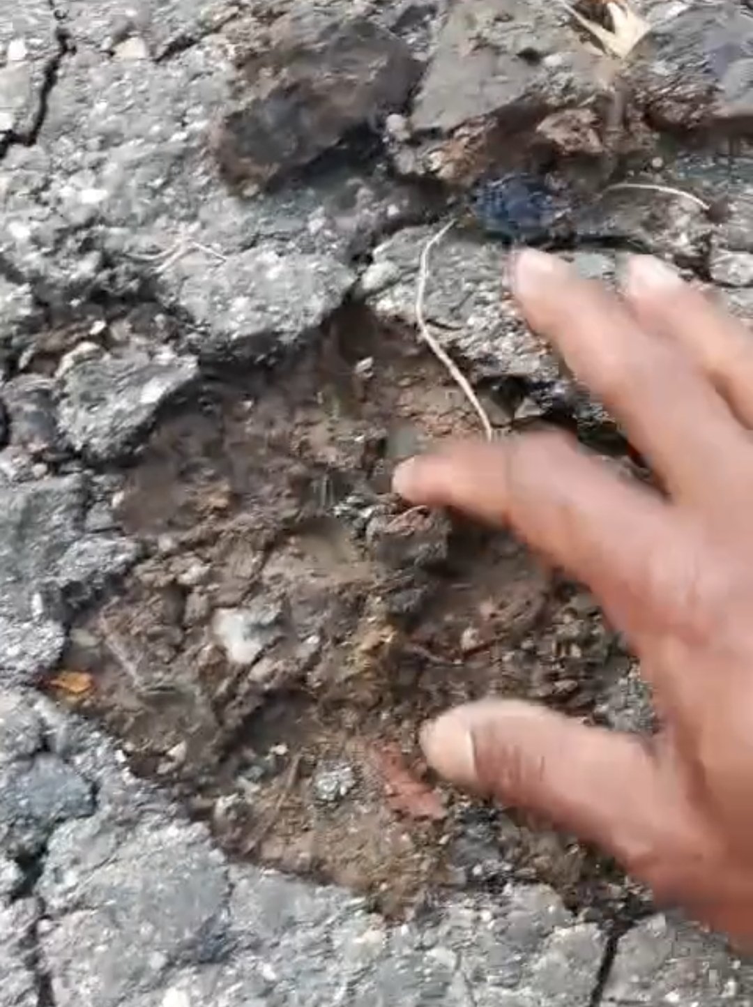 Saat permukaan berhasil dicungkil, bukannya temukan lapisan batu dibawahnya, tetapi justeru tanah yang masih basah. Hal itu diduga karena pekerjaannya tidak mengikuti standar.