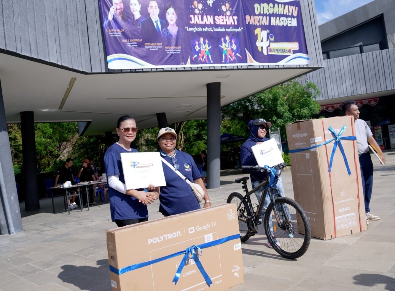 “Terima kasih kepada Partai NasDem, kami sangat senang mengikuti kegiatan jalan sehat ini. Karena selain diajarkan pola hidup sehat, saya juga mendapatkan hadiah utama” katanya.