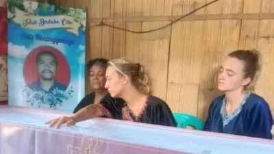 Bule asal Belanda saat menangis dan memeluk peti jenazah kekasinya di Sikka.