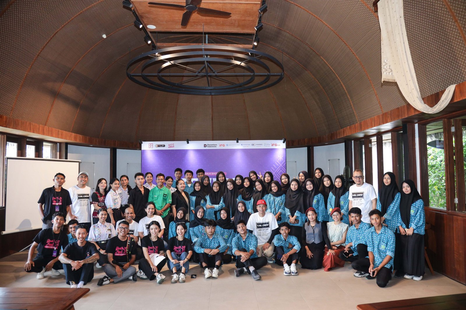 Puluhan peserta dari kalangan pelajar, mahasiswa, dan para pelaku seni menghadiri kegiatan talk show Youth Fest yang menghadirkan narasumber-narasumber pemuda inspiratif, antara lain Jovandi (Owner Tapa-Tapa), Ayuni Praise (Sanggar Tate Kind Art), Ge Karno (Founder Bajo Talk Foundation), dan Ari Putra (Kawan Bike).